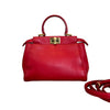 This is an authentic Fendi Peekaboo X Mr Doodle Mini Nappa in Red. This chic satchel is crafted from nappa leather. The bag features a leather top handle, and an optional adjustable shoulder strap with gold hardware and twist lock closures on front and back. The bag opens to Mr. Doodle printed leather interior with two compartments divided by stiff partitions and one slip pocket and one zip pocket.