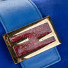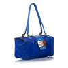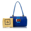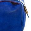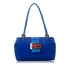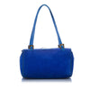 Fendi Suede Handbag Blue. This handbag features a suede body, flat leather handles, a top flap with a flat strap and magnetic closure, and an interior slip pocket.