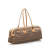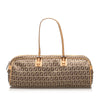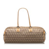 Fendi Zucchino Canvas Handbag Brown. This handbag features a canvas body with leather trim, flat leather straps, and a top zip closure.