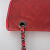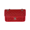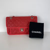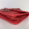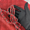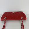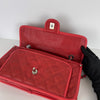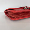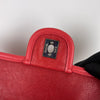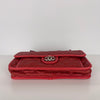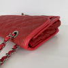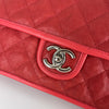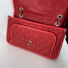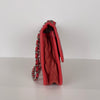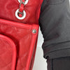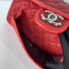 This Chanel French Riviera flap bag is made of luxurious diamond quilted caviar leather in red. This shoulder bag features silver chain link shoulder straps threaded with leather and a matching CC turn lock. This opens the front flap to a front pocket and a red fabric interior with a zipper pocket.