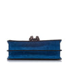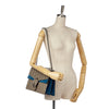 The Dionysus features a coated canvas body with suede trim, a silver-tone chain strap, a front flap with a magnetic closure, and an internal zip and slip compartments.
