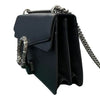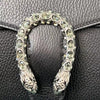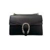 This is an authentic Gucci Dionysus Small Shoulder Pebbled Calfskin in Black. Crafted from pebbled black calfskin leather, the bag showcases an aged silver chain link shoulder strap and a crystal-encrusted horseshoe closure with tiger heads. Opening up reveals an inner flap pocket and a partitioned beige canvas interior with a handy zipper pocket.