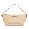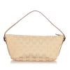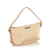 Gucci GG Canvas Boat Baguette Brown. The Boat baguette features a canvas body with leather trim, a flat leather strap, and a top zip closure.