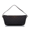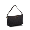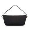 Gucci GG Canvas Boat Baguette Black. This baguette features a canvas body with leather trim, a flat leather strap, and a top zip closure.