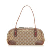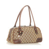 Gucci GG Canvas Princy Handbag Brown. The Princy handbag features a canvas body, rolled leather handles, a top zip closure, and interior slip and zip pockets.