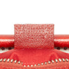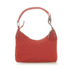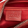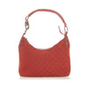 Gucci GG Canvas Shoulder Bag Red. This shoulder bag features a canvas body with leather trim, a rolled leather handle, a top zip closure, and an interior zip pocket.