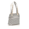 This Gucci tote bag features a canvas body, a front exterior zip pocket, flat straps, and a top zip closure. Its simple gray look makes for a clean and fresh addition to your outfit and wardrobe. Its seamless style makes it easy to fit in together with an outfit meant to give off a fresh look, and this bag's stylishness will definitely be a valuable asset to your wardrobe.