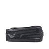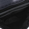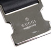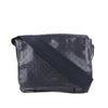 This GG Imprime Crossbody Bag Blue features a PVC body with leather trim, a flat adjustable nylon strap, a top flap with dual buckle closures, and interior zip and slip pockets.