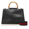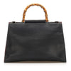 Gucci Medium Bamboo Nymphaea Leather Satchel Black. The Nymphaea Satchel features a leather body, bamboo handles, a detachable flat strap, an open top and an interior zip and slip pockets.