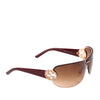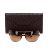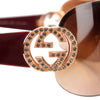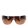 Gucci Oversized Shield Sunglasses Brown. These sunglasses feature an acetate body with gold-tone hardware and rhinestone details, and tinted lenses.