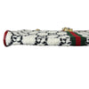 This is an authentic Gucci Rajah Chain Tote Tweed Large GG Monogram in White, Black and Cherry. The front showcases a striking crystal tiger head stud, while the red and green web striping adds a touch of sophistication. The bag features gold chain link shoulder straps with red leather shoulder pads and opens to a beige fabric interior with a removable matching pouch.