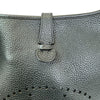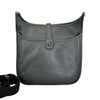 This is an authentic Hermes Evelyne III PM Taurillon Clemence in Black. This stylish cross-body bag is finely crafted of taurillon clemence calfskin leather. It has a fabric cross-body strap, a front perforated Hermes H, and palladium hardware with clasps for the shoulder strap. The top opens to a matching suede interior.