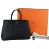 This is an authentic Hermes Garden Party 30 TPM Toho in Black. This sophisticated tote is finely crafted of grained leather in classic black. The bag features rolled leather top handles and a top snap in palladium silver. This opens to a spacious fabric interior with a zipper pocket.