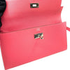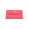 This is an authentic Hermes Kelly Long Wallet Chevre Mysore Goatskin in Pink. This stylish wallet is crafted of textured chevre leather. The wallet features a facing strap and a silver plated Kelly signature turn-lock that opens the flap to a matching leather interior with two card slots panels, a partition zipper pocket, and open pockets.