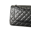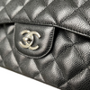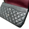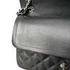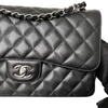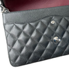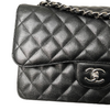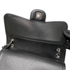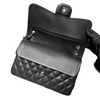This Chanel Classic Flap is as Iconic as a bag can get. It features the durable black diamond-quilted Caviar Leather adorned with silver hardware. It also features the leather and silver chain link shoulder strap which can be worn long or short. The interior is the perfect size to fit all of your daily needs and essentials.