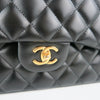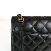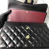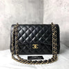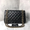 This black Jumbo Chanel double flap lambskin handbag with gold hardware is a classic combo. It is the perfect size to fit all of your daily needs and essentials. The black colour can go with any outfit and style, making this piece your everyday bag.