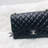 This black Jumbo Chanel double flap lambskin handbag with silver hardware is a classic combo. It is the perfect size to fit all of your daily needs and essentials. The black colour can go with any outfit and style, making this piece your everyday bag.