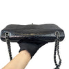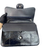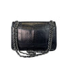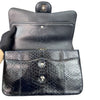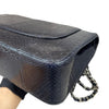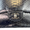 This rare Chanel Jumbo Double Flap bag in dark blue Python leather with silver hardware is a standout piece that will add personality to your wardrobe. The interior is lined with leather and has a large main pocket and a few small compartments to store all your essential items.