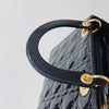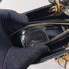It carries a rating condition of 9/10. This bag is in great condition, and ready for a rendezvous out. The geometric quilted patent leather exterior is in great condition with minor signs of wear. The interior is clean, while the top handles and long detachable strap are in excellent condition. The hardware shows signs of wear and hairline scratches.