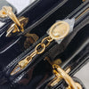 A sleek, feminine style from the iconic brand, the Medium Lady Dior in Patent Black leather and Gold Toned Hardware features the hallmark soft geometric quilted patent leather topstitched with the iconic Cannage in black. The gold signature D.I.O.R. metal jewelry charms embellish it with feminine elegance, while the sturdy top handles with a long detachable chain make it versatile.