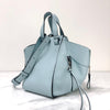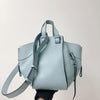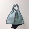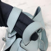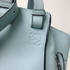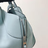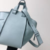 This chic and lovely Loewe Hammock tote in Aqua blue has a unique one-piece reinforced design with leader top handles, a small zipper pocket, a brass zipper that helps expand the length of the bag with an optional adjustable shoulder strap.