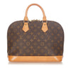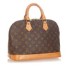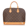 Louis Vuitton Monogram Alma PM Brown. The Alma PM features a monogram canvas body, rolled leather handles, a leather bottom, a top zip closure, and an interior slip pocket.