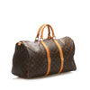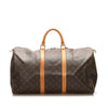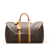 The Louis Vuitton Monogram Keepall 45 Brown features a monogram canvas body with leather trim, rolled leather handles, and a top zip closure. This bag will make a great travel companion.