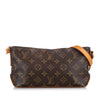 Louis Vuitton Monogram Trotteur Brown. The Trotteur features a monogram canvas body, a flat vachetta strap, a top zip closure, and an interior zip pocket.