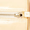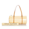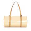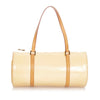 Louis Vuitton Vernis Bedford Brown. The Bedford features a vernis leather body, a side exterior slip pocket, flat leather straps, and a top zip closure.