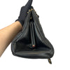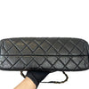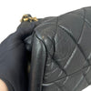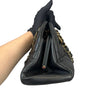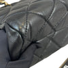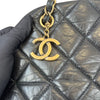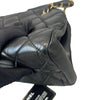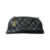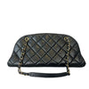 Chanel Mademoiselle Calfskin Leather Bowling Bag in black. This bowling bag features a quilted leather body, gold-tone leather woven chain straps, an open top, an interior zip compartment, and internal zip and slip pockets.