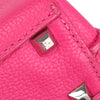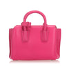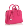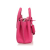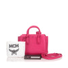 The Mini Milla features a leather body, rolled leather handles, a detachable flat leather strap, a top velcro closure, and interior zip and slip compartments.