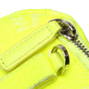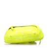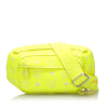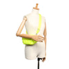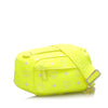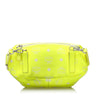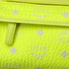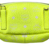 This MCM Visetos Leather Crossbody Bag Green features a leather body, a flat leather top handle, a flat adjustable strap, a front exterior zip pocket, a top zip closure, and interior pockets.