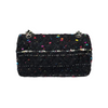 Dress up your everyday essentials in a gorgeous Chanel Medium Classic Flap Tweed bag. This stylish flap bag is a brilliant eye candy and is crafted from woven fine tweed in black with multicoloured detailing. It has silver leather-threaded chain-link shoulder straps. A sliver Chanel turn lock opens to an interior with enough room for your day to night essentials. The interior features two flat pockets and another front compartment for those items you want to keep handy.
