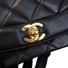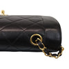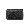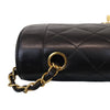 The Chanel Medium Diana Flap shoulder bag features a lambskin leather body, chain strap, a front flap with interlocking Cs and twist lock closure, and interior zip pocket.