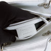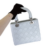 This medium Lady Dior bag comes in beautiful lIght blue coloured rare grained leather. It features silver toned hardware and a top zipper that opens to a classy interior in dark lEsther. This classic bag can be used throughout the day but is perfect for your evening socials.