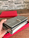 This Christian Dior Mini Diorama Bag in Metallic Calfskin is a chic way to add an accent without overwhelming colour. Featuring metallic Cannage Patent Calfskin leather, a chain link shoulder strap and intricately designed front flap, this bag can effortlessly go from day to night. Don’t miss your chance to own this beauty.