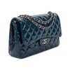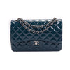 Navy blue Double Flap patent leather jumbo with SHW – Bag Religion