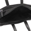 This Prada Tessuto Business Bag Black features a nylon body with leather trim, flat leather handles, a detachable strap, exterior zip and slip compartments, top zip closures, and interior zip and slip pockets.