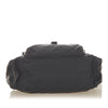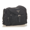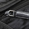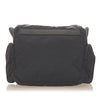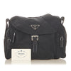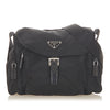 This crossbody bag features a nylon body with leather trim, exterior front and side zip pockets, an adjustable flat strap, a front flap with buckle closure, a top zip closure, and an interior zip pocket.