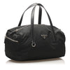 This Prada Tessuto Handbag Black features a nylon body, a flat handles, a top zip closure, and an interior zip pocket.