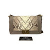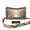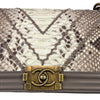 This Authentic Chanel Old Medium Boy Bag in Python Leather is a rare and beautiful collector's piece. Dress up your everyday essentials in a Chanel Boy Bag, or take it out for a special occasion. The interior features one flat pocket for those items you want to keep handy.