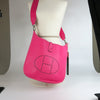 With an adjustable shoulder sport strap and roomy size, the Evelyne PM Rose Tyrien Pink Shoulder Bag is the perfect sidekick to run your daily errands. Featuring a roomy interior and deep exterior pockets, this bag is great for those who like to keep their daily essentials compact and organized. Crafted with its signature perforated H on the front, this crossbody is light and comfortable to wear. We love the striking Rose Tyrian pink on this item, a rare find.