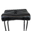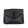 This is an authentic Saint Laurent Medium Loulou Chain Satchel Calfskin Y Quilted in Black. This chic shoulder bag showcases chevron quilting and boasts black chain-link shoulder straps adorned with leather shoulder pads. The front flap proudly displays a prominent black YSL monogram, revealing a partitioned black fabric interior complete with zipper pockets.
