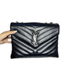 This Saint Laurent Loulou "Y" Quilted Medium Bag is a fierce fashion statement for the fashion-forward. This stunning bag features smooth leather with the signature interlaced YSL monogram detail in silver hardware on the front flap. The interior features two compartments that provides plenty of room for all of your essentials. Add a bold edge to your most basic outfit with this flexibly structured classic Saint Laurent!