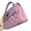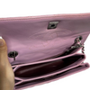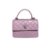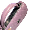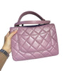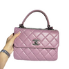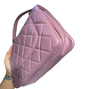 This Chanel Small Trendy CC Flap Lambskin Quilted in Lillac Purple is a stunning piece. It features a lambskin leather exterior, a leather top handle, and a chain and leather strap. This beauty can be worn as a top handle, or a shoulder bag.