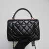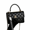This Chanel Small Trendy CC may be trendy, but it's also a timeless classic. On the exterior, you get the gorgeous double C logo, and Chanel hardware detailing across the top of the bag. On the interior, you have 3 compartments for maximum organization. This top handle bag comes with the convenience of a detachable strap for convenient wear.