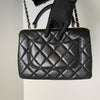 This piece is in 9/10 condition with minor signs of wear throughout. The lambskin leather has softened on the back of the bag. Hairline scratches can be seen on the top as well as CC hardware.