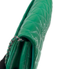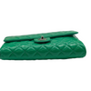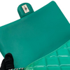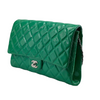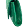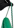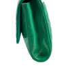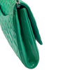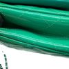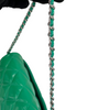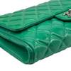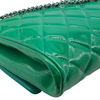 This Chanel Timeless clutch is made from luxurious green patent leather in a diamond-quilted design. It features a chain link strap that can be utilized when not worn as a clutch.