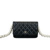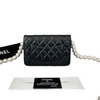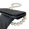 The Chanel Quilted Wallet on Chain is the perfect complement to your outfit. Featured in the 2020 Runway collection, crafted of luxuriously soft diamond quilted lambskin leather in black and adorned with a long strap with large pearls. Not only is this bag fabulous but it is also functional.