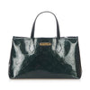 The Wilshire PM features a vernis leather body, flat leather straps, a top lobster claw closure, and an interior zip pocket.